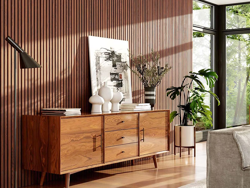 Faux wood paneling begins with a simple premise: recreate the feeling of wood without relying on the material itself. It is a manufactured surface—built from MDF, PVC, WPC, or composite resins—yet shaped to carry the grain, tone, and quiet rhythm of natural timber.